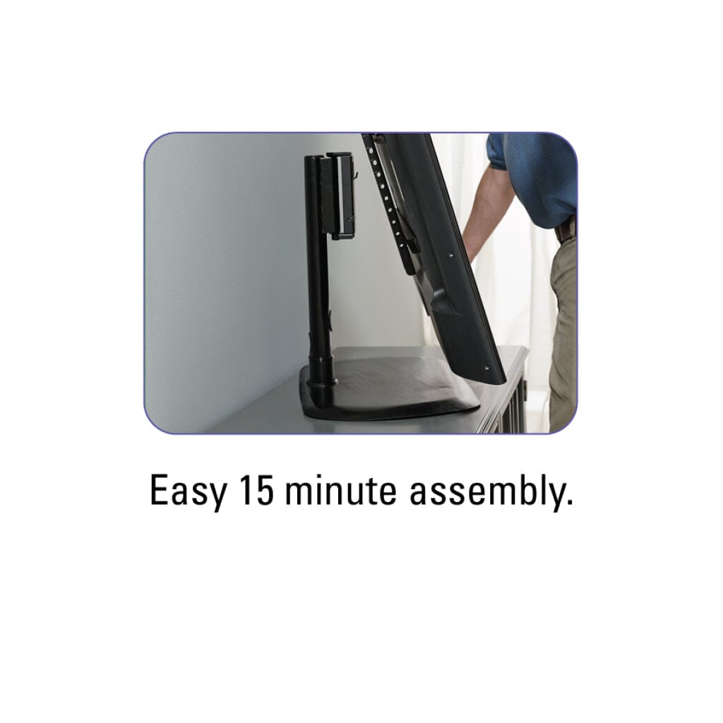 The SANUS VuePoint Swivel TV Base is a table-top TV base that works on all surfaces, and is a substantial improvement over the stands that are traditionally included with TVs.