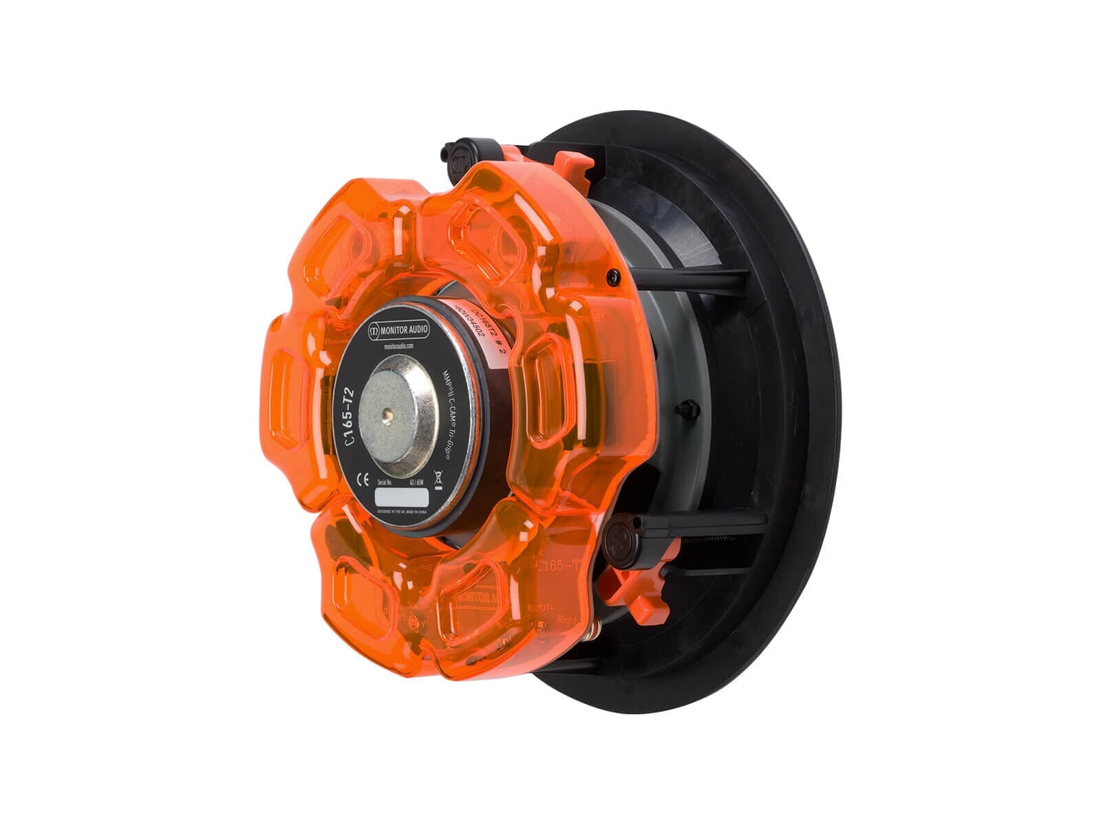 The Monitor Audio C165-T2 features dual, independent, pivoting 1-inch C-CAM tweeters and a 6 1/2 inch MMP II dual wound voice coil bass driver, for high performance stereo sound from a single speaker.