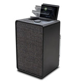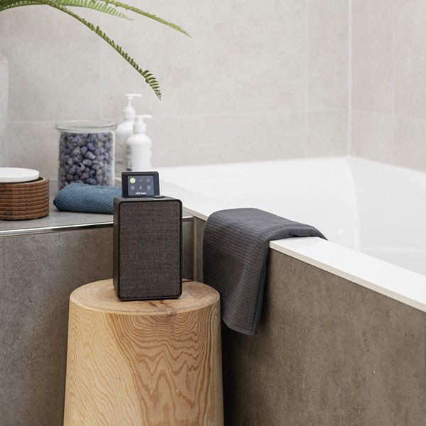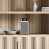 The front of the music system, which is covered with a high-quality wool fabric made of 90% eco-certified and recycled wool, provides additional homely accents.