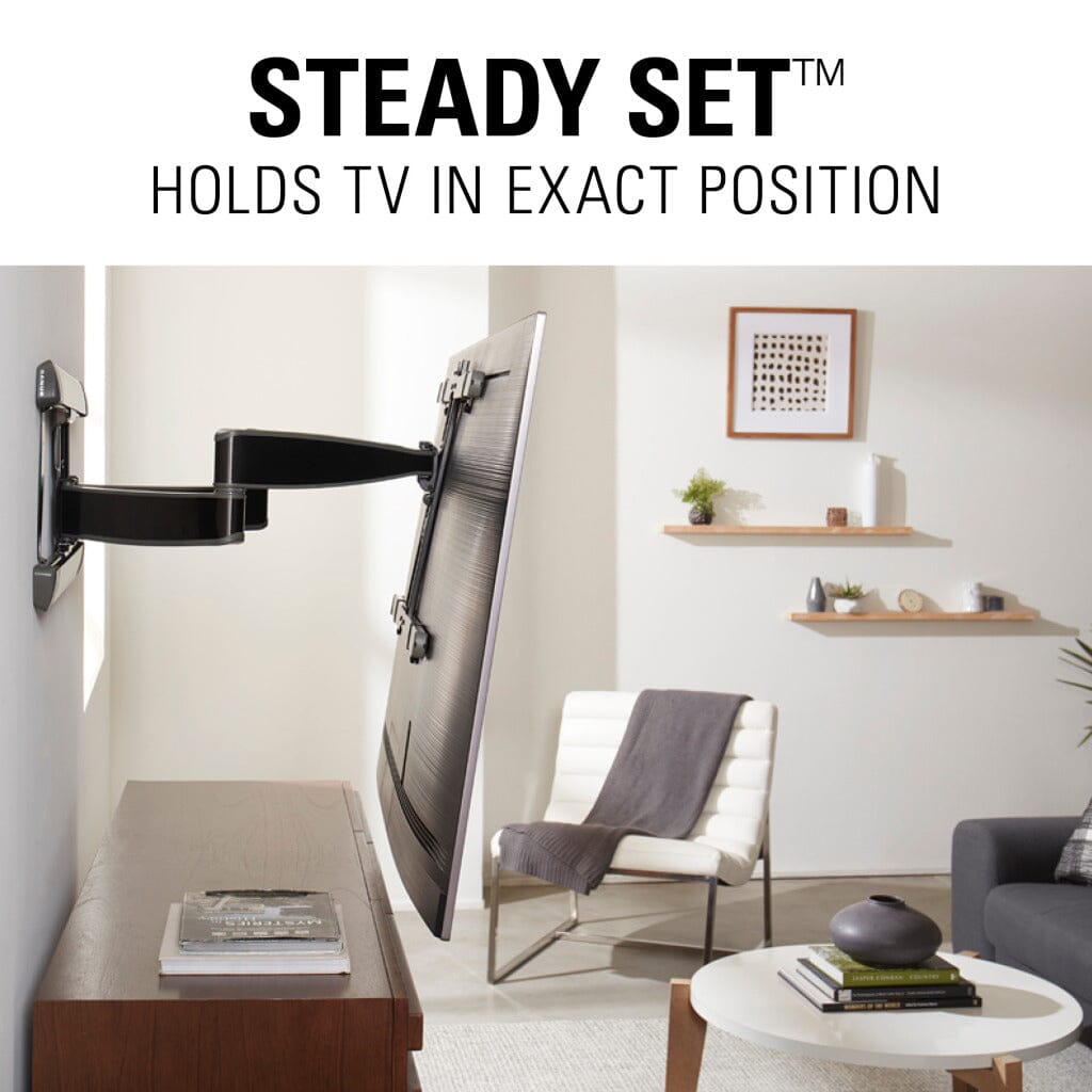 The mount’s included Steady Set™ functionality ensures your TV will stay exactly where you want it – no drifting, shifting or unwanted movement ever.
