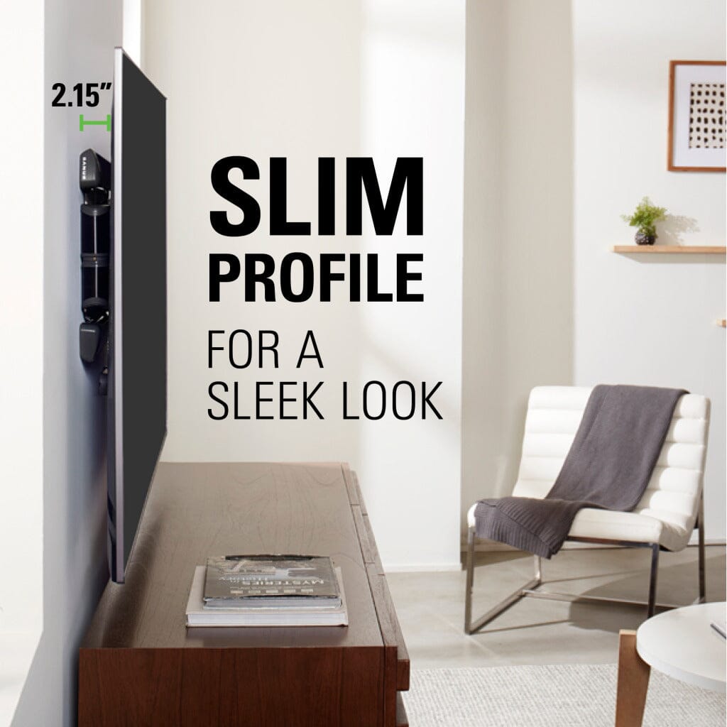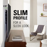 SPACE-SAVING DESIGN: Places TV just 2.15” from the wall for a streamlined look that complements today’s sleek TVs.
