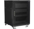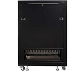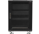 Swivel casters and adjustable feet allow mobility and stable positioning, and cooling vents on the top and bottom of the rack ensure all equipment stays at the ideal temperature.