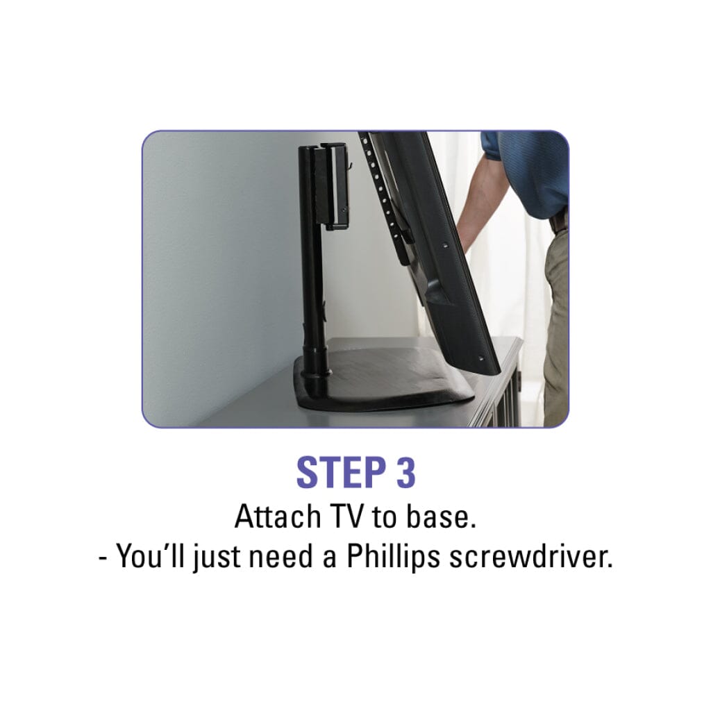 The SANUS VuePoint Swivel TV Base is a table-top TV base that works on all surfaces, and is a substantial improvement over the stands that are traditionally included with TVs.