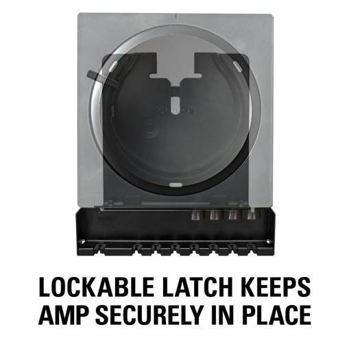 The lockable latch keeps Amp securely in place, and the included optional cable organisation keeps cords snug and protects inputs from damage.