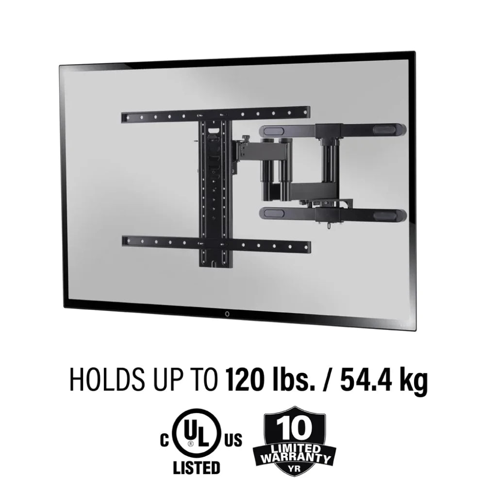 25-inches of extension offers flexible cable access, and the perfect viewing angle so you get the best seat wherever you are. Motion lock knobs keep your TV securely in place to prevent unwanted movement. With Virtual Axis(TM) fingertip tilt technology, you can tilt and swivel your TV to reduce glare and improve the viewing angle.