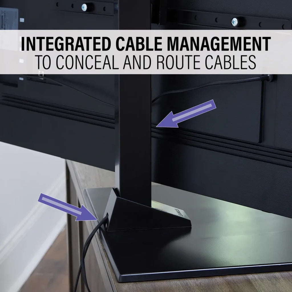 CABLE MANAGEMENT INCLUDED: Integrated cable management to conceal and route cables from your TV.