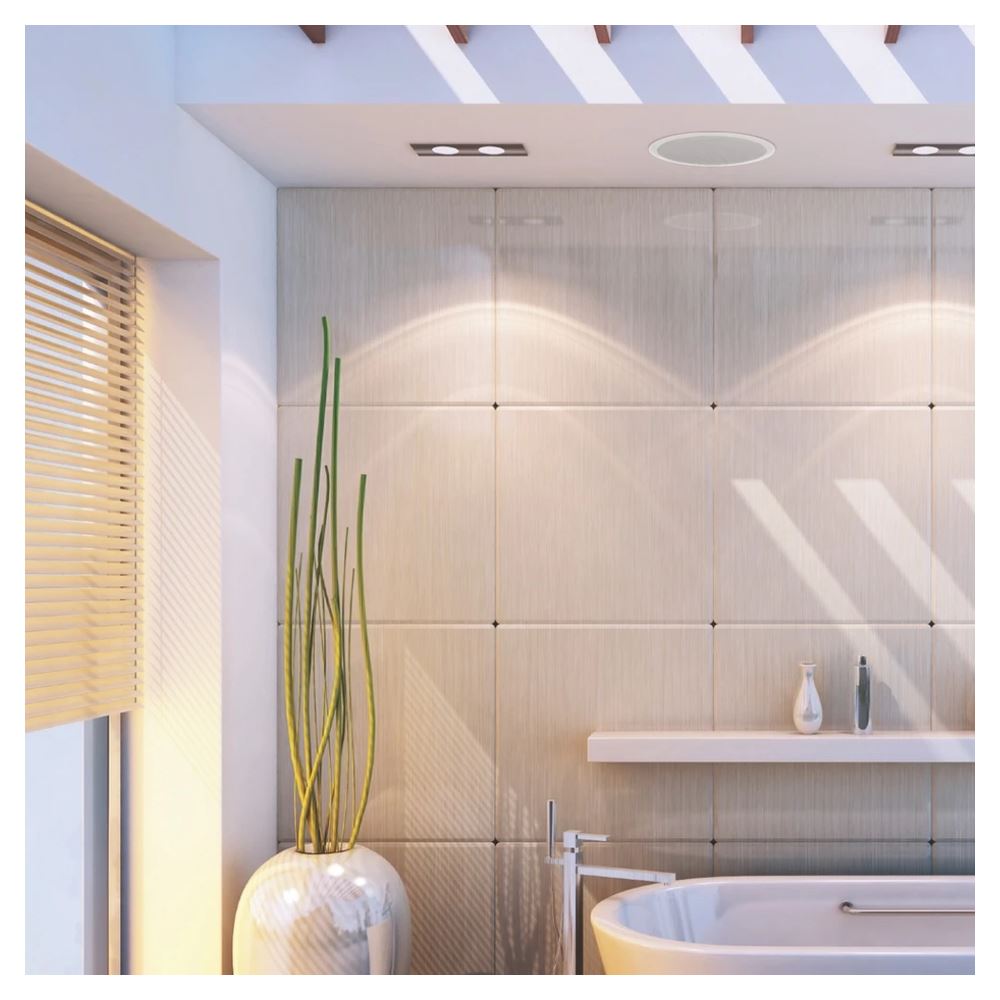 A powerful 2 x 18W amplifier will fill even the largest of bathrooms with high quality music played through the discreet waterproof ceiling speakers.