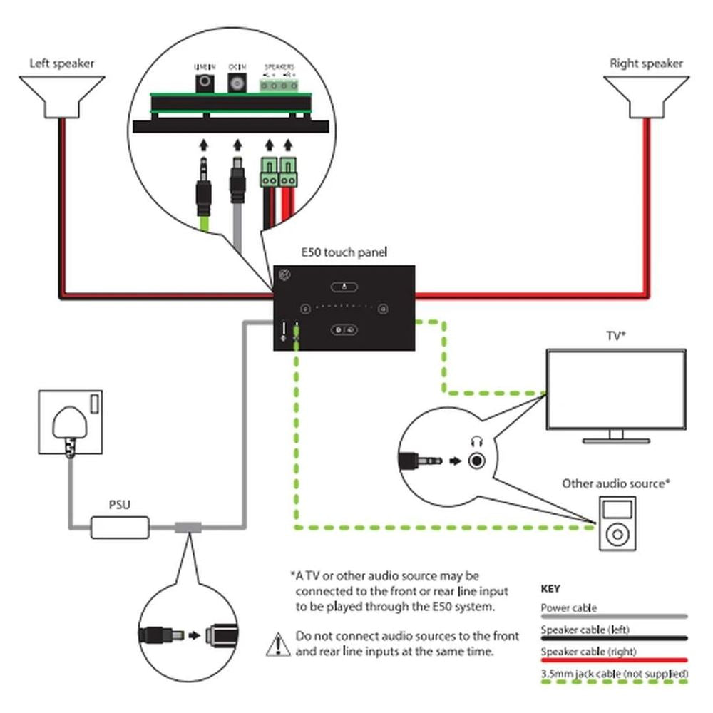 Installing the E50 is pretty easy, the amplifier fits to a standard 2G UK Backbox, install the power supply to a three pin socket mounted above the ceiling or in a cupboard and run the speaker cable to the two ceiling mounted speakers.